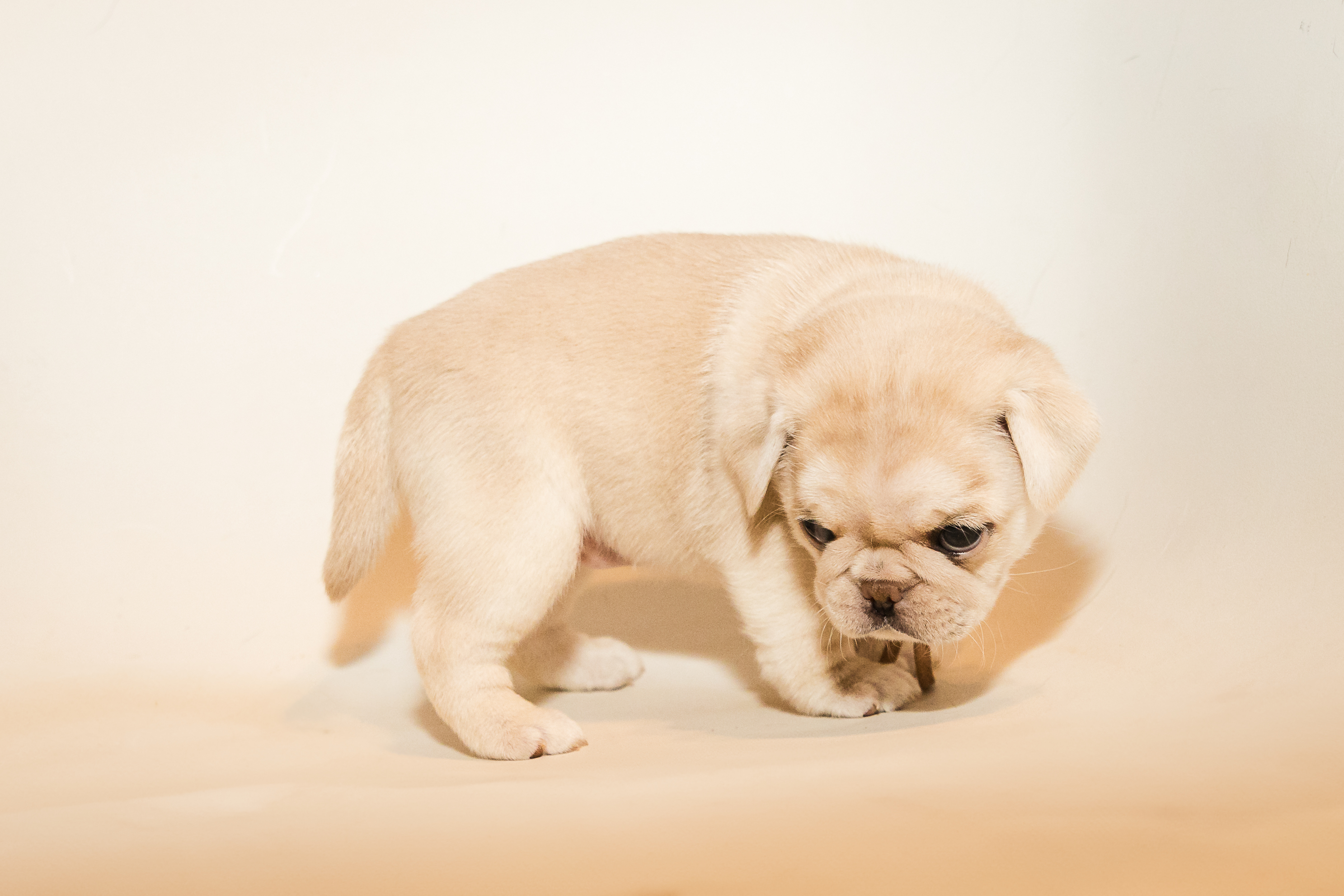 Our momma Carlita has given us a chinchilla coat female in each litter, and we couldn’t be more grateful for her beautiful offspring. This pretty girl is not only sweet and playful but also absolutely gorgeous.